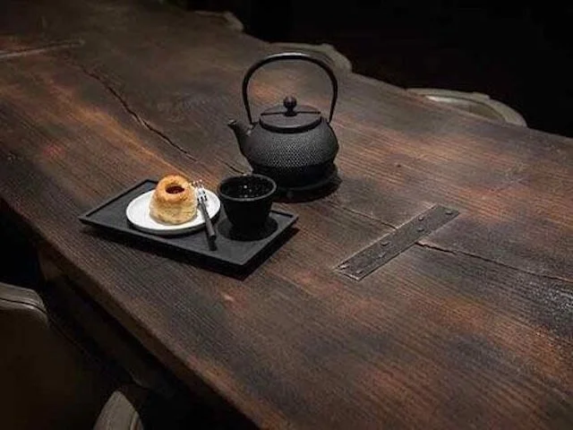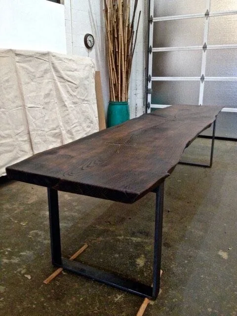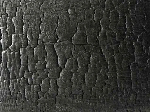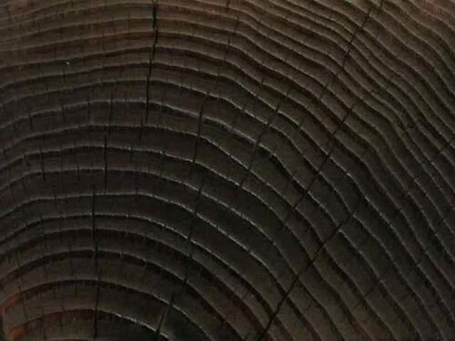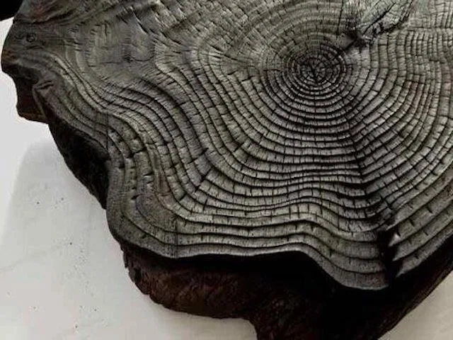 I presented the wood finishes on slices of a salvaged beam and remnant lumber. I left some with evidence of tool marks, and hand-worked others to accentuate the grain and give a sense of having been worn by time and the elements. For coloration, I concocted proprietary bio-based stains, a few infused with black teas. I also introduced Yakisugi to the mix. Authentic Yakisugi (Shou Sugi Ban in the west) is a time-honored Japanese wood cladding made from cypress that is intensely burned as a preservative treatment. I presented it in traditional plank form, and on a full log round. Once burned, I wire brushed each piece, knocking down the charcoal to varying degrees. I then buffed and oiled them to seal and enhance the visual and physical textures.