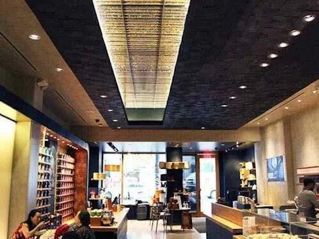 Once final designs were green-lighted, our work included five different applications of three first-iteration concept coppers, plus five architecturally predominant applications of Yakisugi, and other charred woods. The one challenge was that each store was in a different stage of build-out, and orders were placed independently by Starbucks, vendors, and contractors for each location. Without coordinated ordering, our ability to combine production for efficiency was practically eliminated. Nonetheless, orders including last-minute add-ons and change orders were filled successfully and all delivered on time.